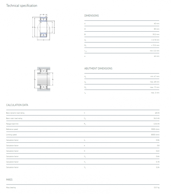 Double Angular Contact (DAC) XGB41140.R00 RZ